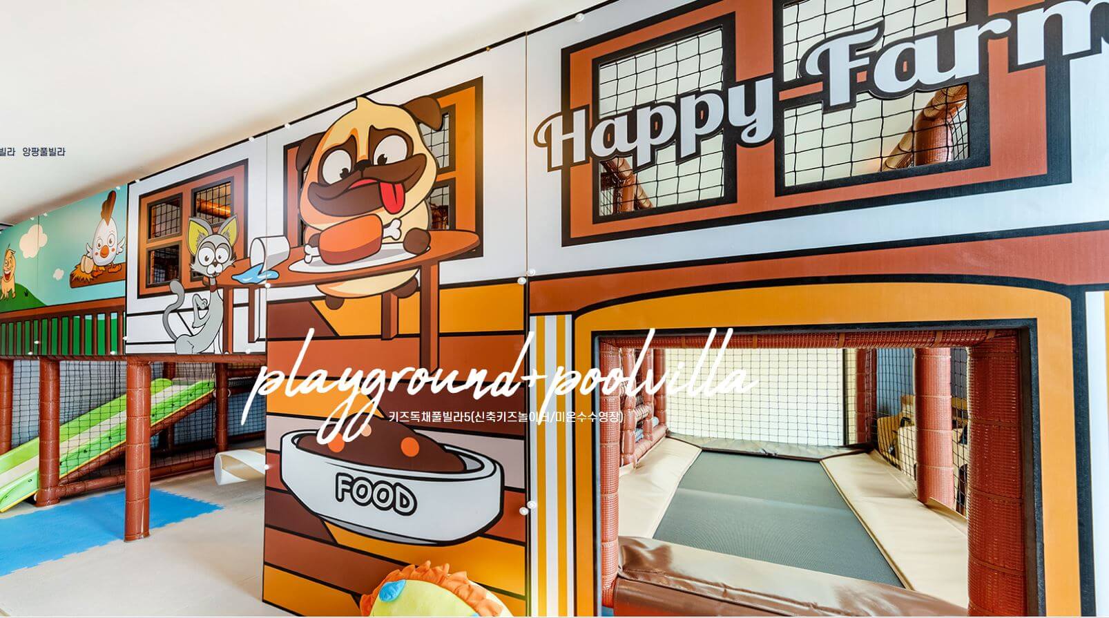 객실구조 : 투룸형 키즈풀빌라 + 거실 + 침대룸2 + 욕실1 객실크기35평형 기준인원기준 4명 (최대 6명) 수영장 크기가로 310 x 세로 580 x 수심 70cm 구비시설실내수영장, TV, 냉장고, 전자레인지, 바베큐그릴, 밥솥, 식탁, 하이체어, 화장대, 젖병소독기, 정수기, 식기류일체, 부엌놀이, 와이파이, 드라이기, 수건, 욕실용품(베이비바디워시), 구명조끼 및 튜브 등