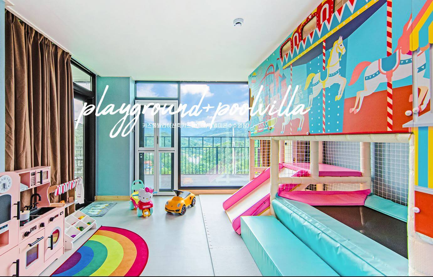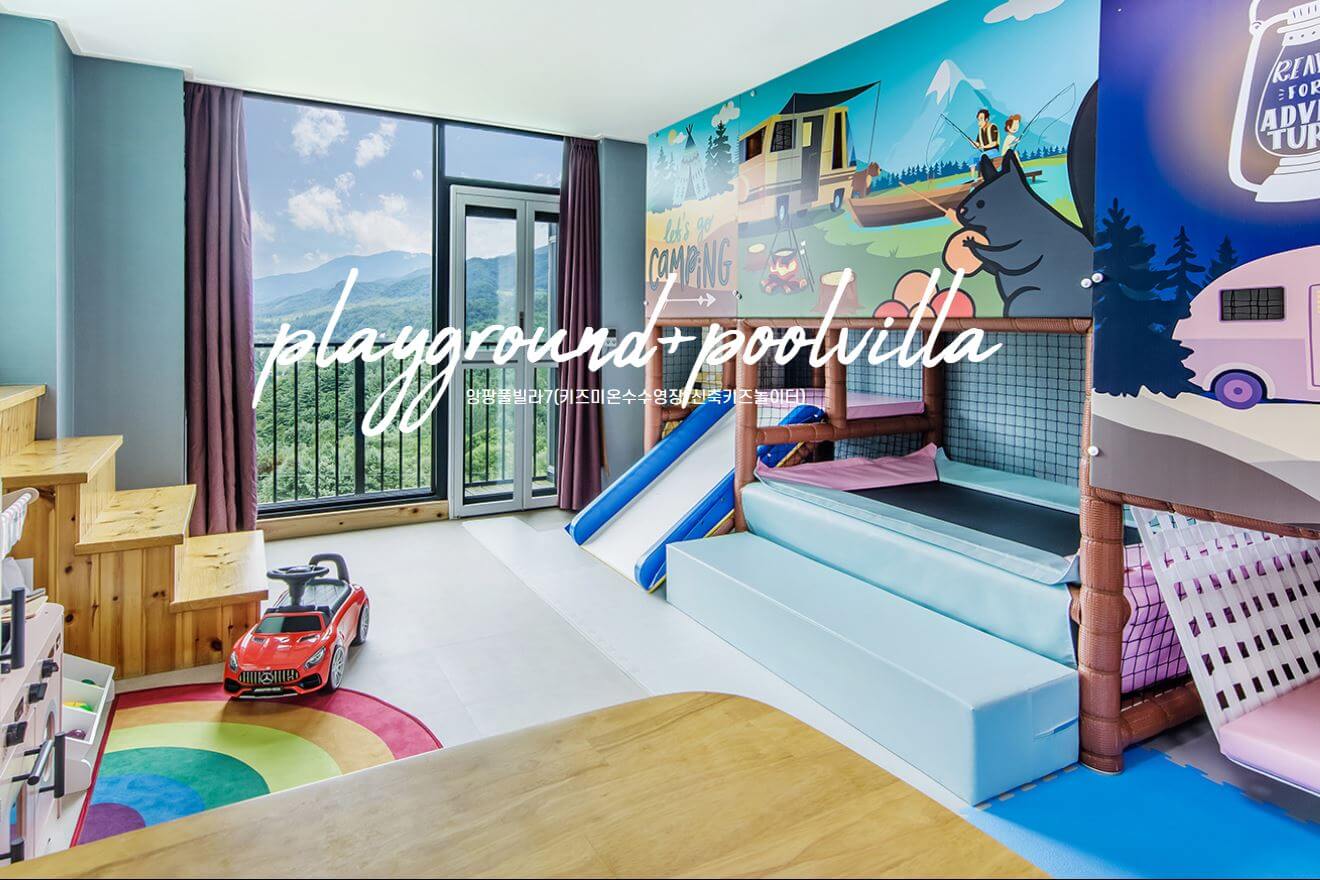객실구조 : 쓰리룸형 키즈풀빌라 + 거실 + 침대룸3 + 욕실3
