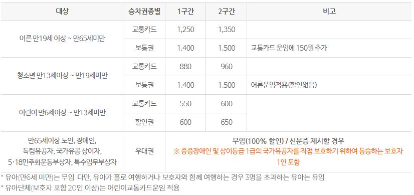 동해선(부산-울산) 복선전철 운임 정보