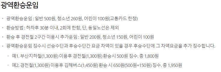 부산-김해 경전철 운임표