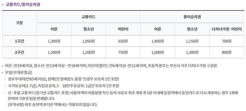 부산 도심철도 운임