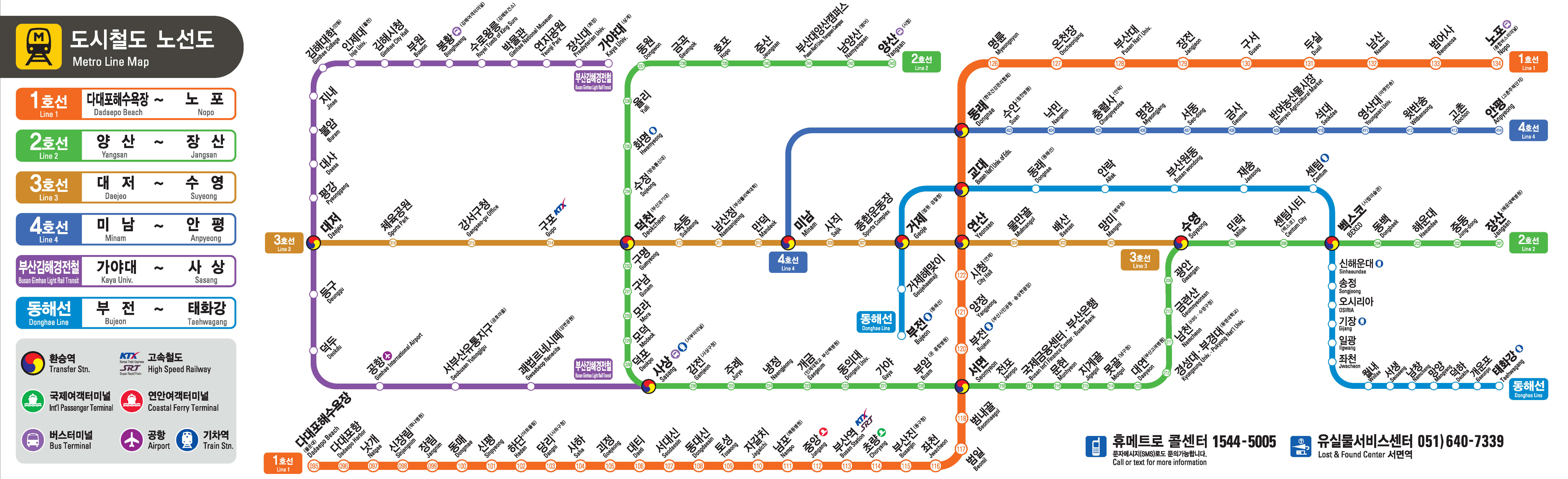 부산 지하철 종합 노선도 안내 및 시간표
